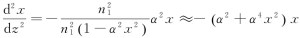 將自聚焦光纖內的傍軸光線再分成近軸光線和遠軸光線。所謂近軸光線就是擺動的光線離軸線不遠,即α2x2?1,可以有近似則式可以近似成
